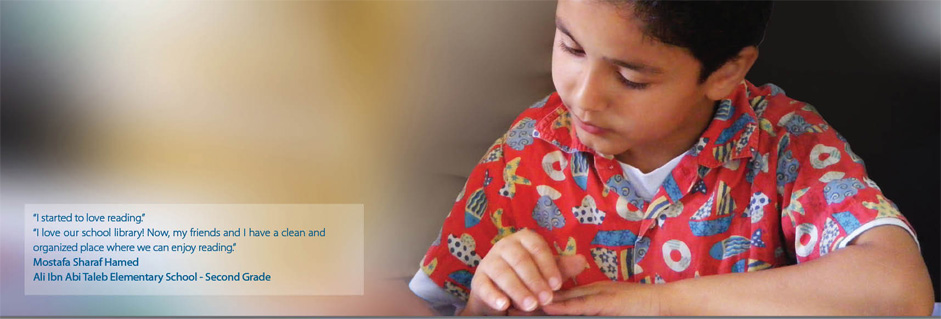 The development and empowerment of the students is at the core of the Foundation’s mission. To help achieve that goal, the renovation of Ali Ibn Abi Taleb Elementary School included many improvements. New school theaters to encourage more cultural and artistic activities, decorative drawings placed on the walls to enhance the children’s aesthetic appreciation; and new library |